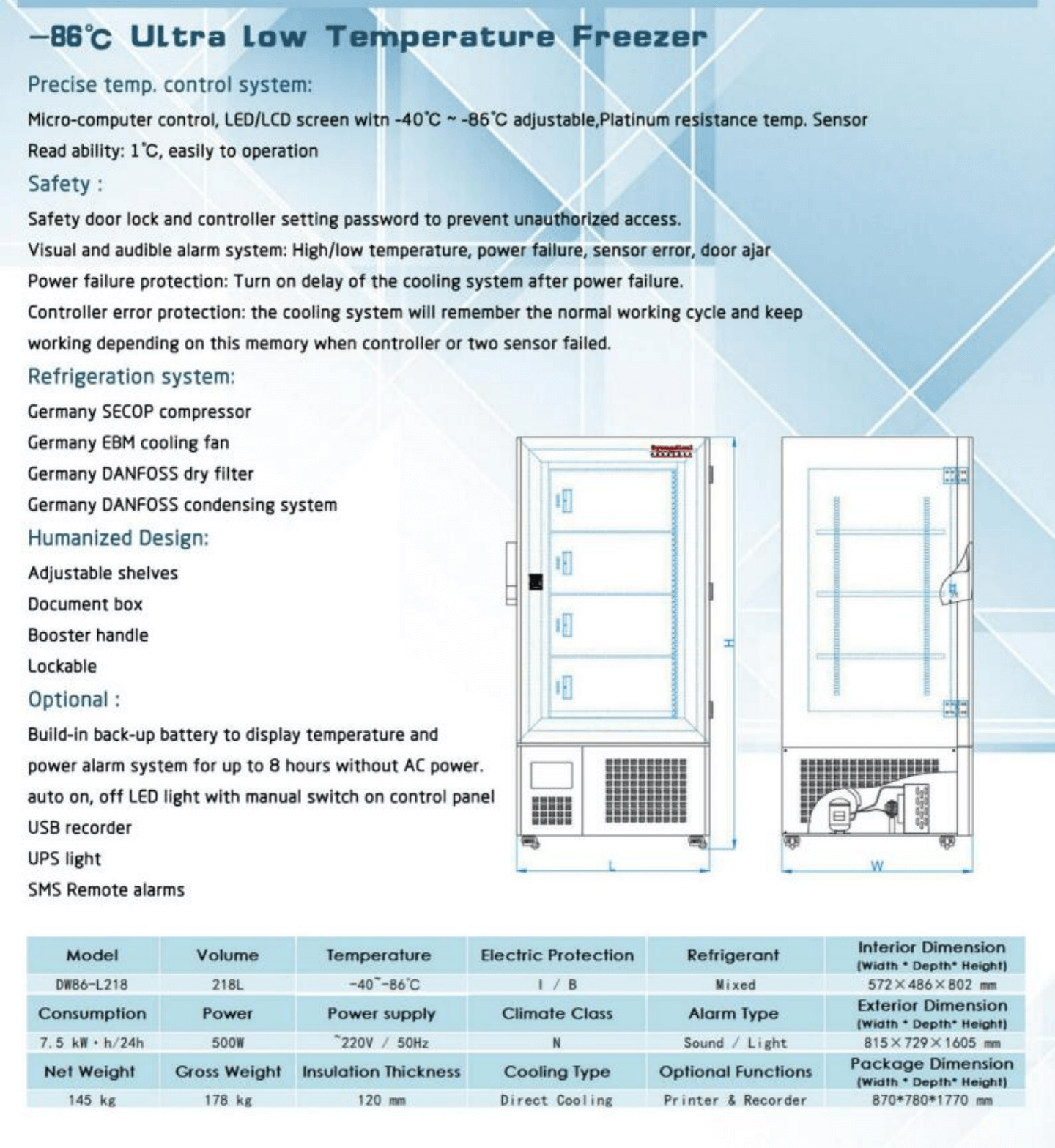 Sie sind hier: Zuhause / Produkte / Krankenhausausstattung / Blutbank / -86 Ultratiefkühlschrank